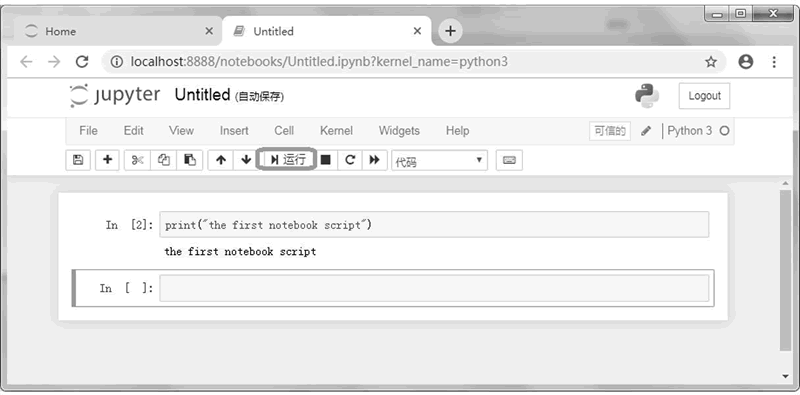 在新打开的页面中输入Python代码,然后单击“运行”按钮即可运行该脚本,如图5所示。