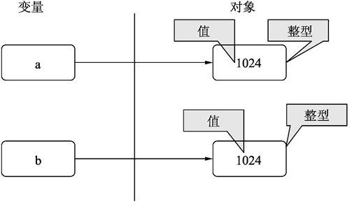 >>> a = 1024 >>> b = 1000 + 24 >>> a 1024 >>> b 1024 >>> id(a) # 变量a指向的对象和变量b指向的对象是两个对象 140377101238440 >>> id(b) 140377101238464 >>> a is b # 此时通过is操作返回False False