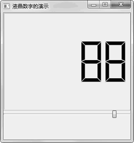 display(self, str) display(self, float) display(self, int)下面是 QLCDNumber 组件使用的一个例子,在这个例子中,创建了一个滑块,用户可以拖动该滑块,这样就可以得到滑块的位置,并将该位置信息用 QLCDNumber 来显示出来。例如当前滑块的位置是 88,那么 QLCDNumber 就显示如图 1 所示的信息。